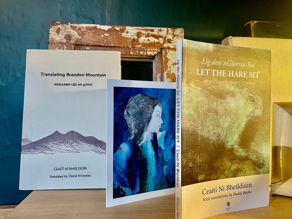 Ceaití Ní Bheildiúin, a.k.a Cathi Weldon, is from Rush, North Co. Dublin and currently lives in the Gaeltacht of West Kerry, in the area known as Corca Dhuibhne. Ní Bheildiúin writes in her adopted tongue, Irish, and four volumes of her original poetry, have been published, the lastest of which is Agallamh sa Cheo, published by Coiscéim, which earned her the Michael Harnett Prize of 2021, as well as Oireachtas prize for best volume of Irish language poetry 2018. Ceaití’s fifth collection of original poems is now ‘waiting in the wings’. Two bilingual volumes of poems by Ceaití have been published. The latest of these is a selection of poems made and translated to English by Paddy Bushe, published by Dedalus Press, 2022. A third bilingual edition of her work awaits a publication date. Ceaití works with Fingal Poetry Festival as a committee member, creating an Irish-language aspect to that festival since 2021. She acts as mentor to emerging Irish language poets and facilitates creative writing workshops as well as poetry workshops, through Irish, at the Díseart Centre in Dingle, Co. Kerry. She holds an MA in Gaeilic Lit.
